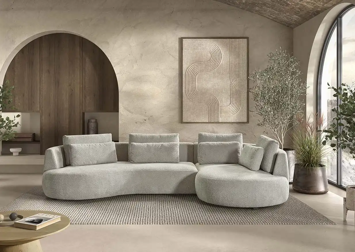 Le salon d’angle Samara allie des principes de design modernes à une silhouette organique unique. Ses lignes fluides et ses formes arrondies confèrent à ce salon un look contemporain qui s’intègre parfaitement dans les intérieurs minimalistes et tendance. Recouvert d’un tissu très doux et léger, le Samara offre non seulement une douceur visuelle, mais aussi une expérience d’assise extrêmement confortable.