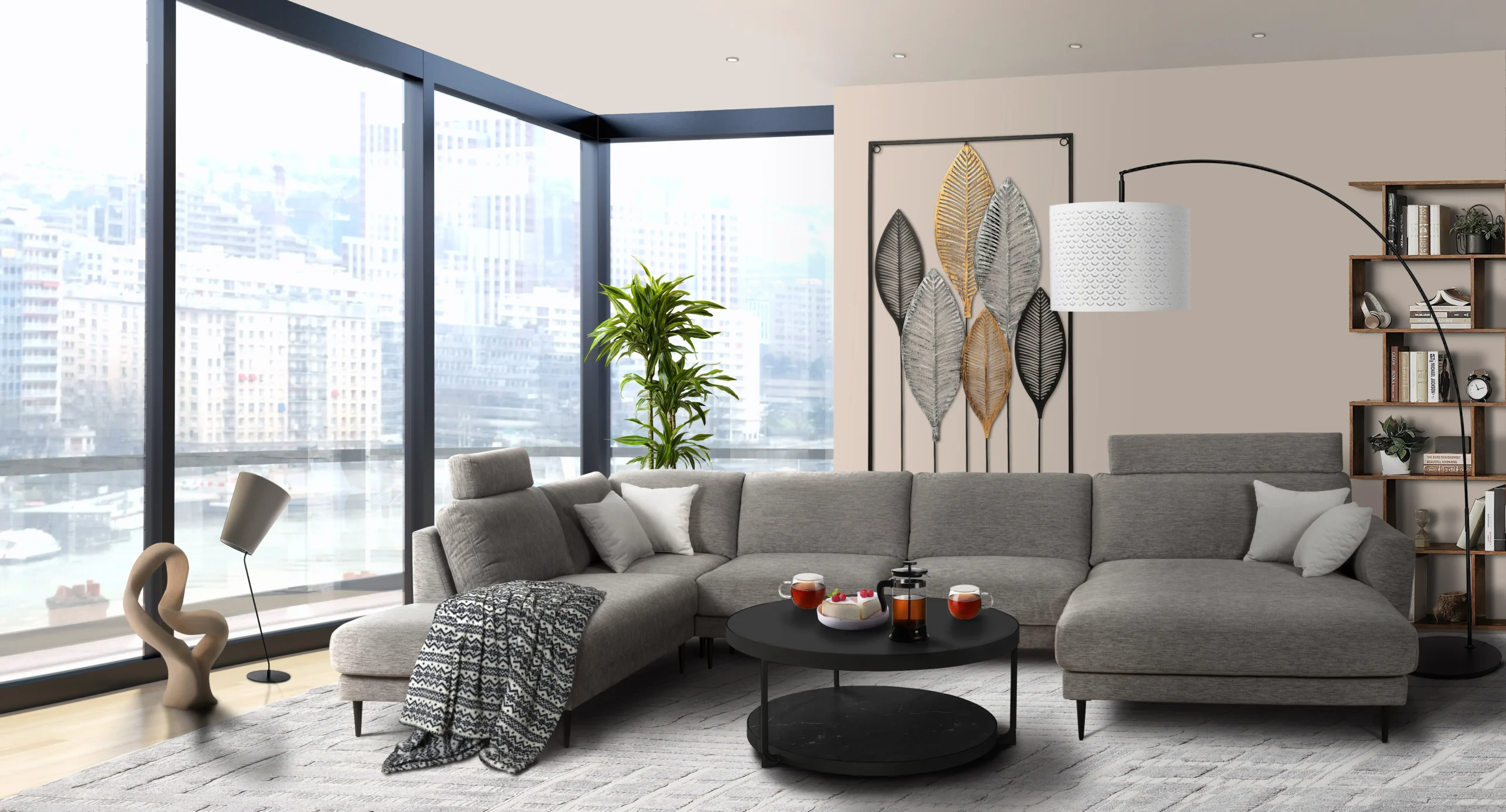 Découvrez ce salon moderne, conçu pour transformer votre espace de vie en une oasis de détente et d’élégance.