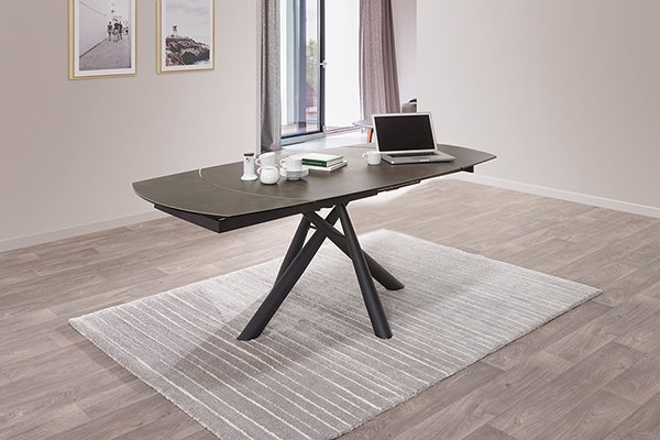 Ronde uitschuifbare keramische tafel, zelfdraaiend.